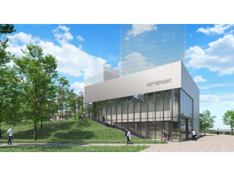 グラングリーン大阪で、特に自然が溢れるうめきた公園の中に一棟型で存在し、都会的な街並みと緑の美しいコントラストが訪れる人たちを魅了します。